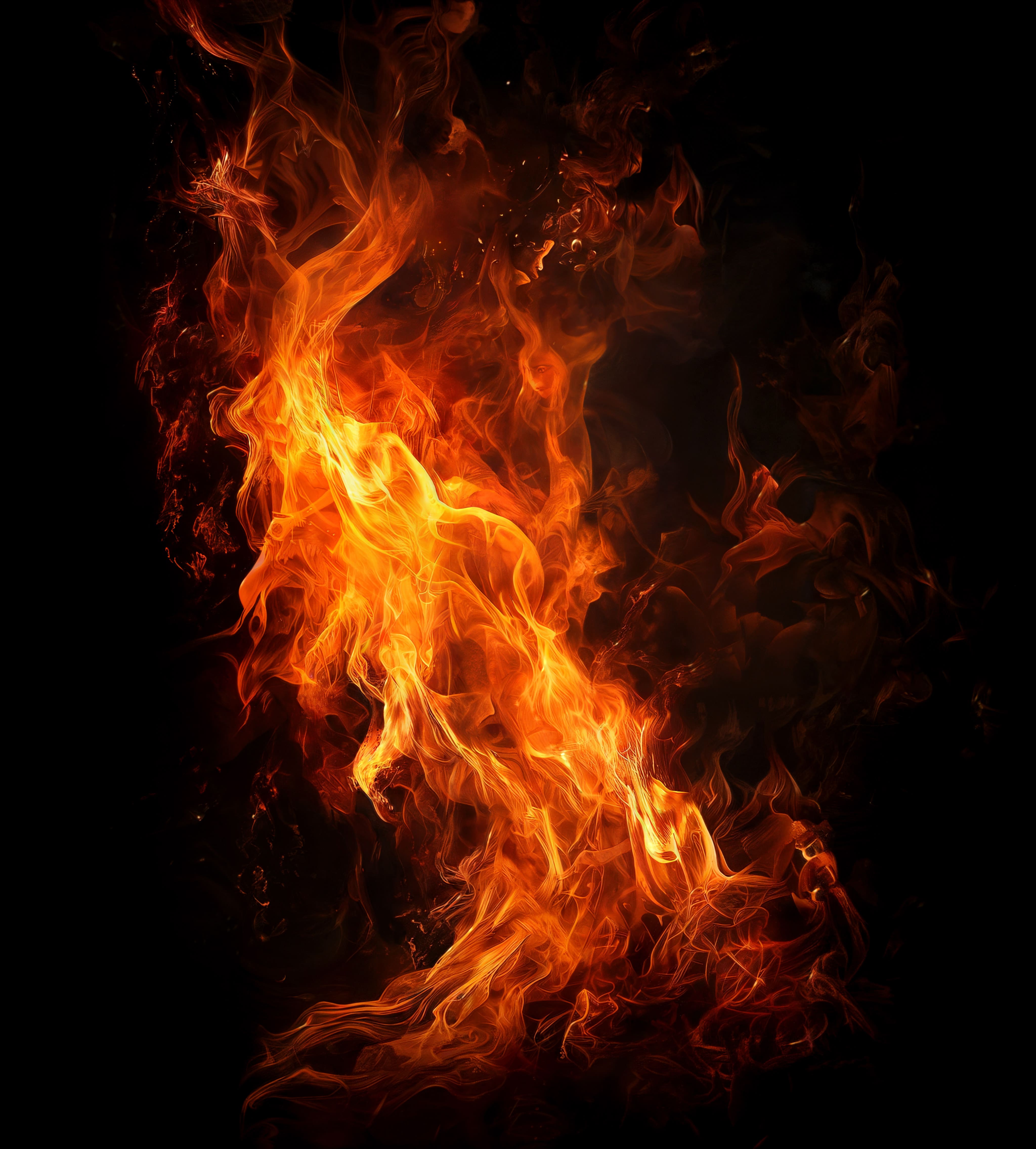Fire Flame On Black Bg