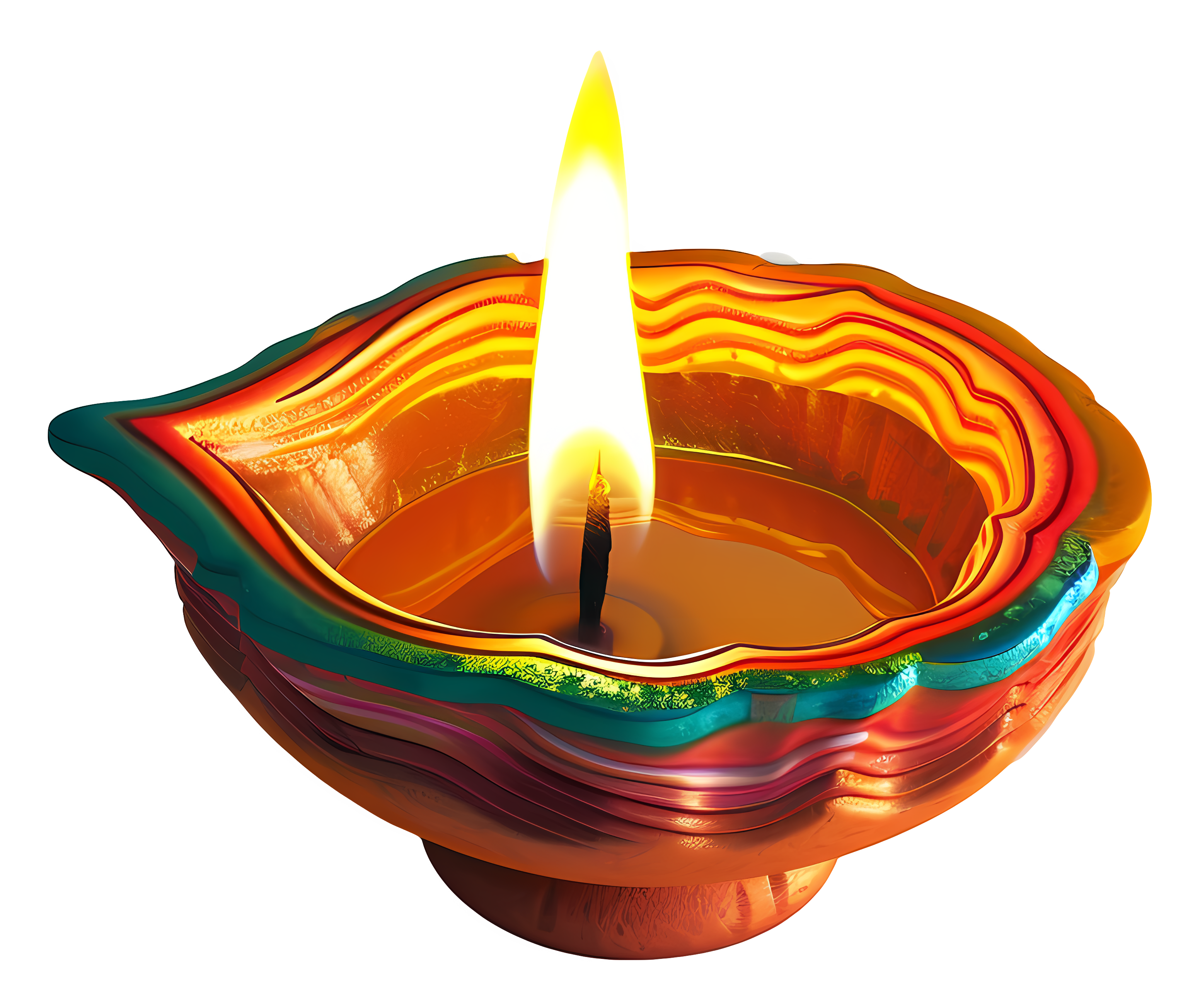 Colorful Diya Lamp Glowing Flame Transparent PNG