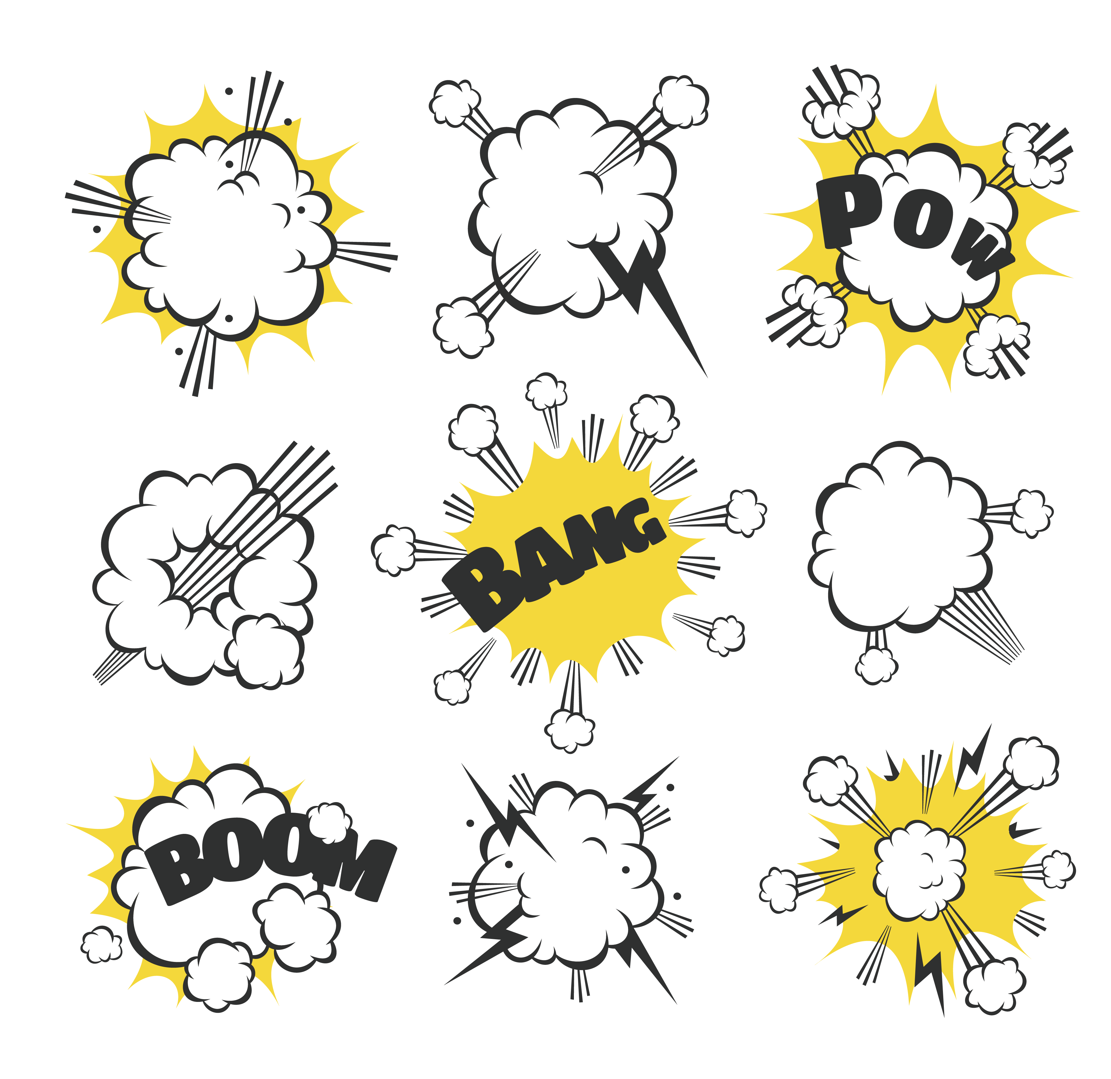Comic Impact Comics cloud word Onomatopoeia Comics Comics explosion cloud dialog text comic Book clo