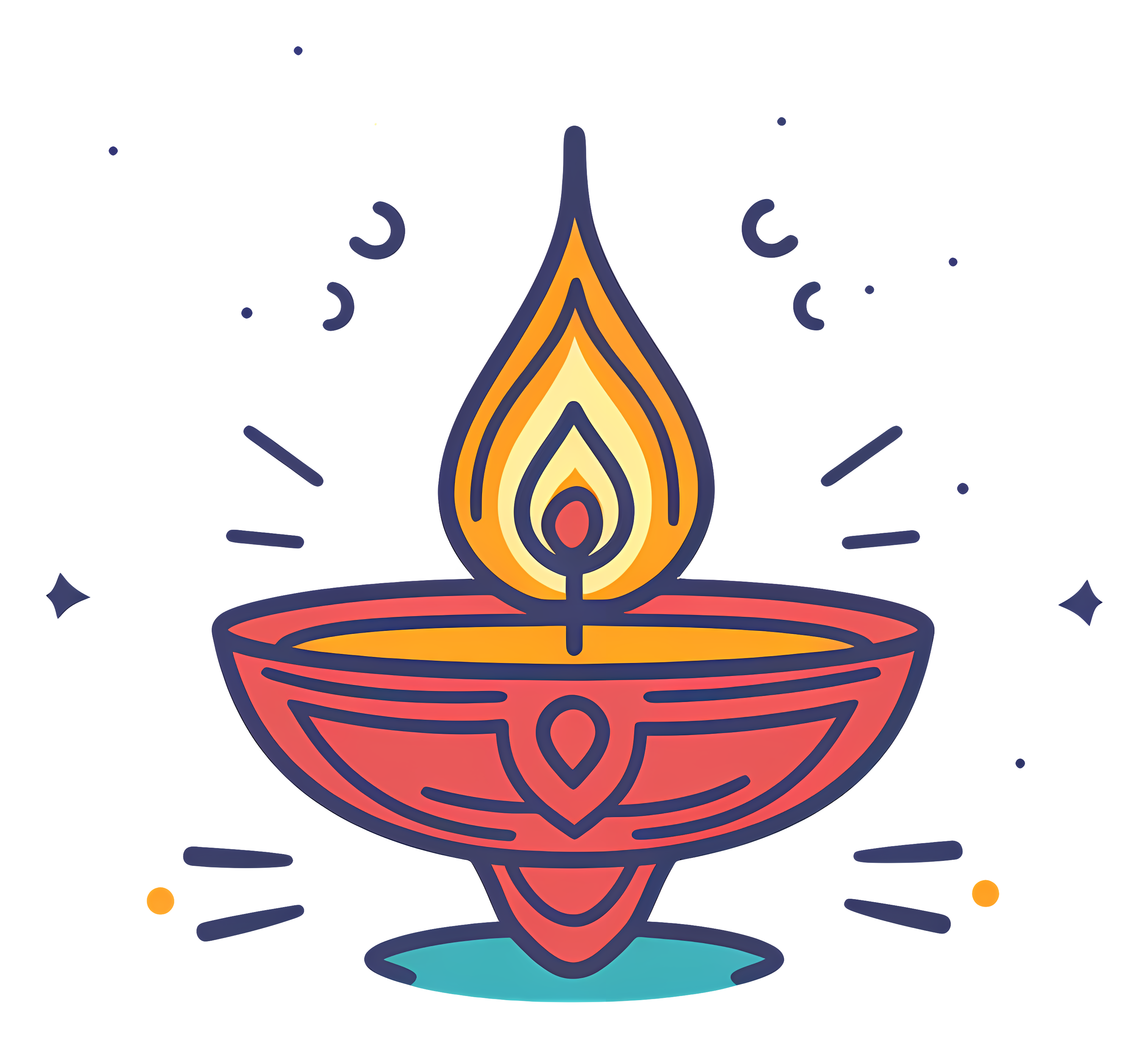 Colorful Diwali Diya Sparkling Flame Transparent PNG