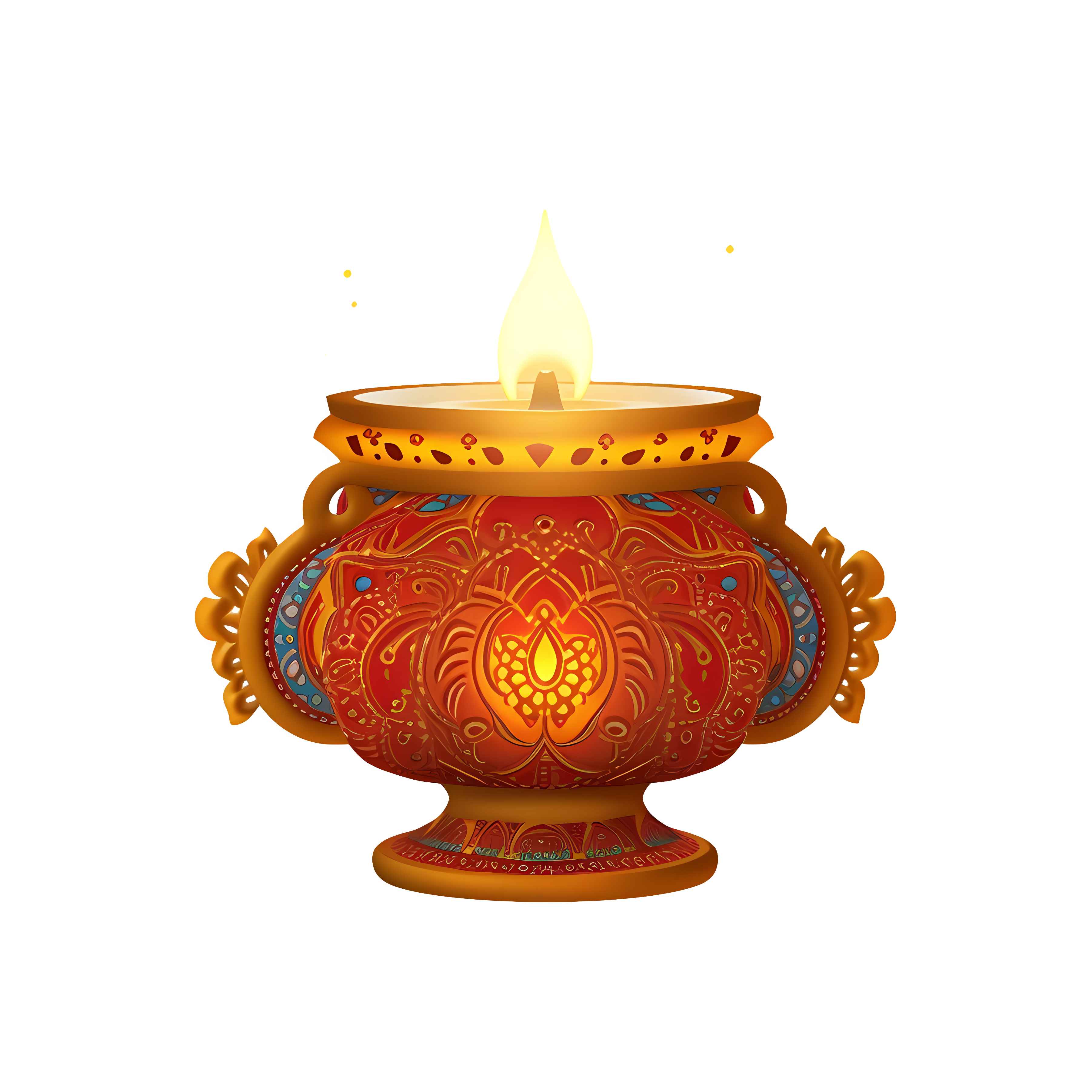 Colorful Diwali Diya Sparkling Flame Transparent PNG