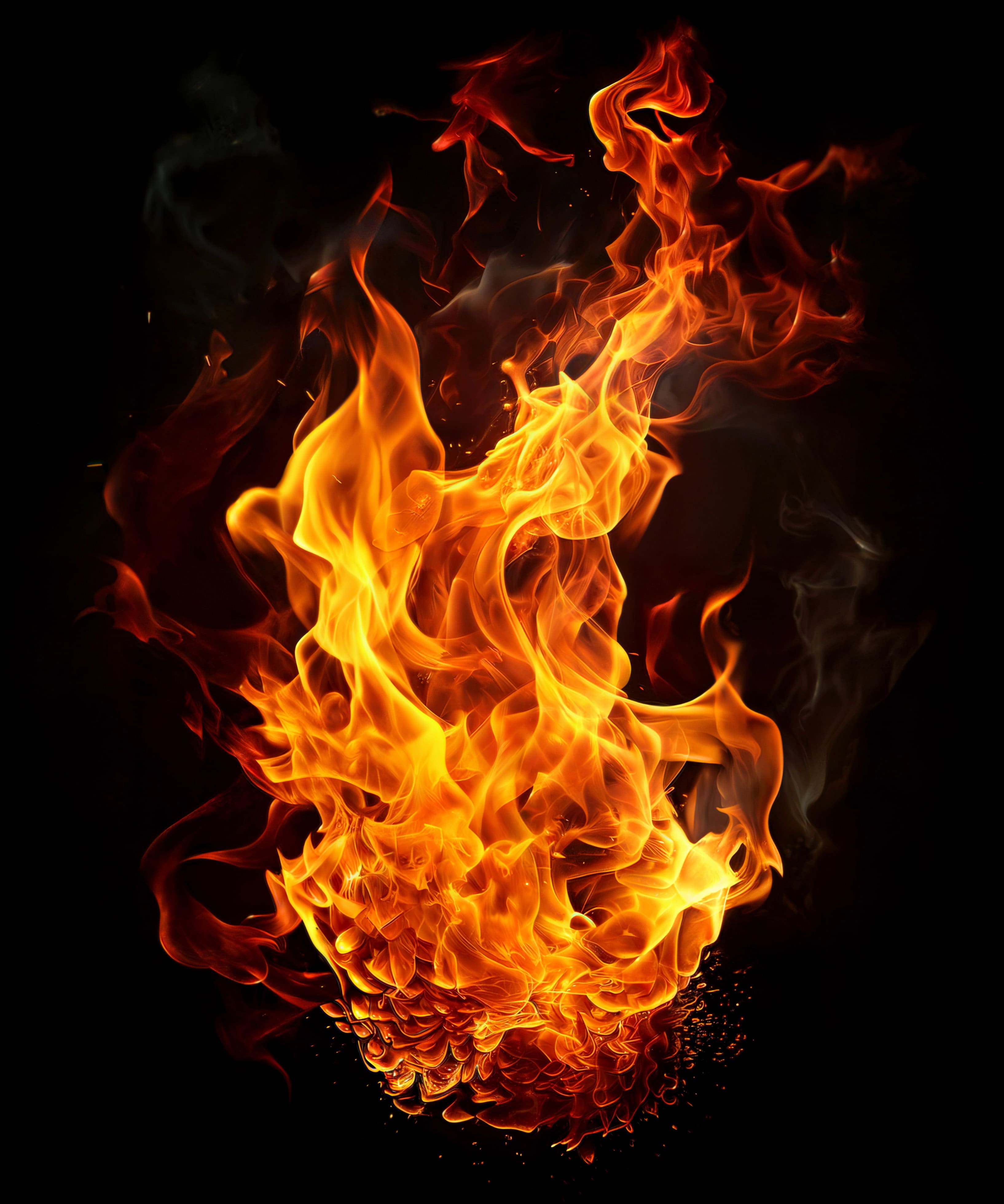 dynamic deep inferno abstract smoldering on black bg fire flame blaze ignition combustion transparent overlay isolated realistic vfx visual effect red orange yellow golden smoke ember