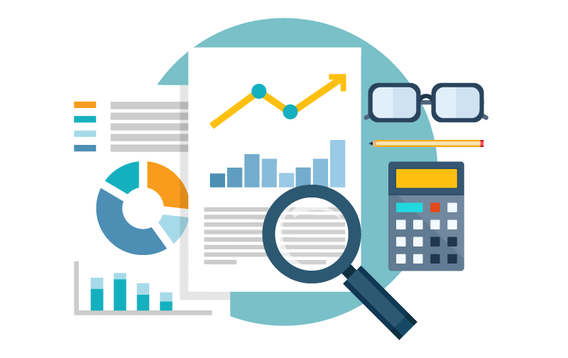 Magnifying Glass Beside Calculator Eyeglasses Market Research Marketing Competitor Analysis Quantitative