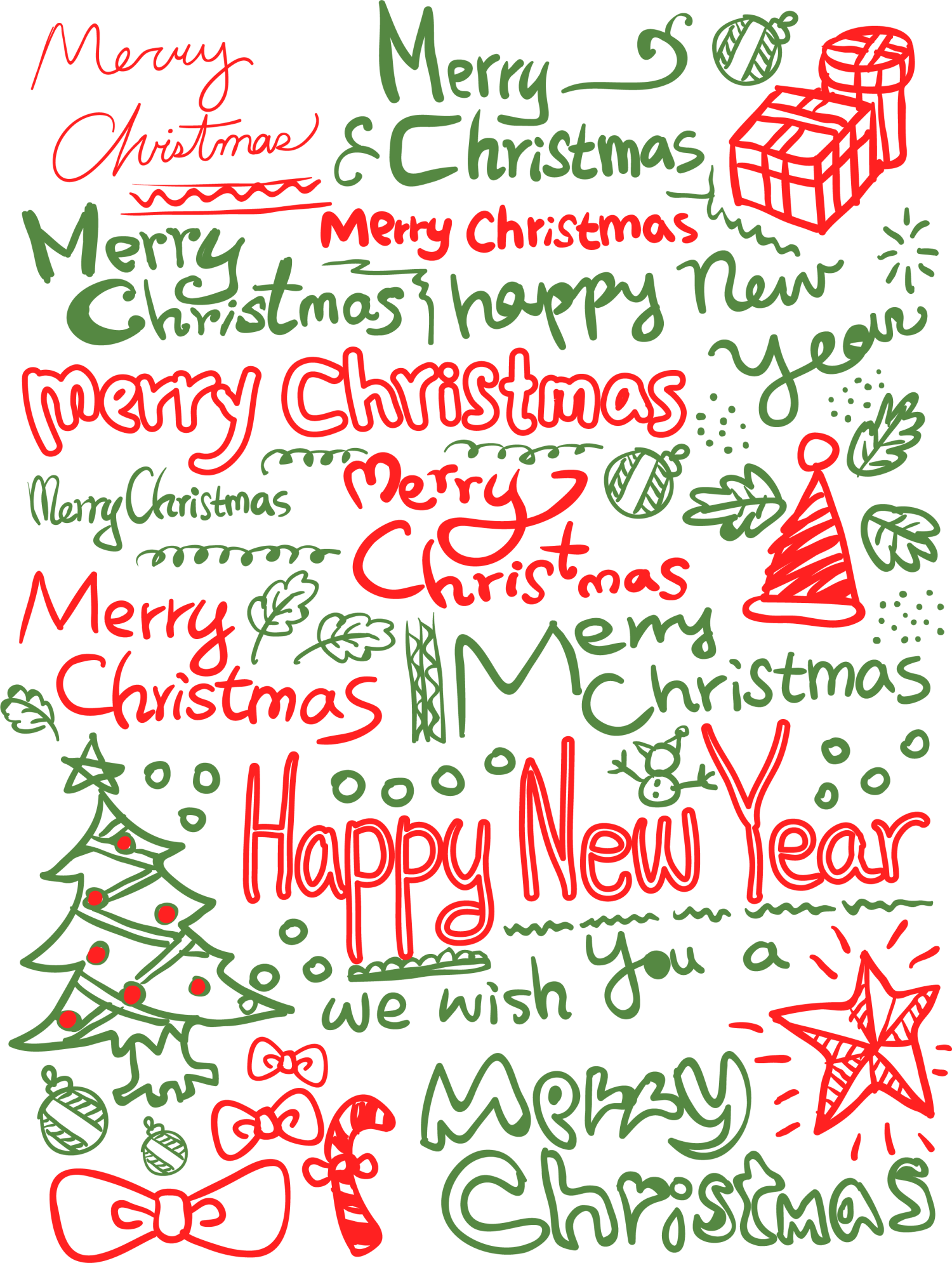Merry Christmas Happy New Year Text Art Christmas Tree PNG