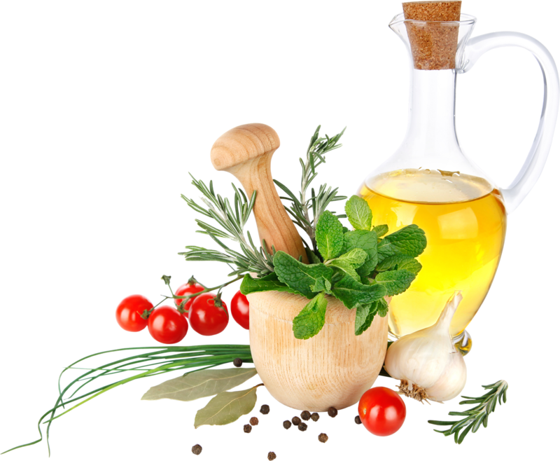 oil bottle beside mortar and pestle vegetable olive garlic herb butter transparent background . image