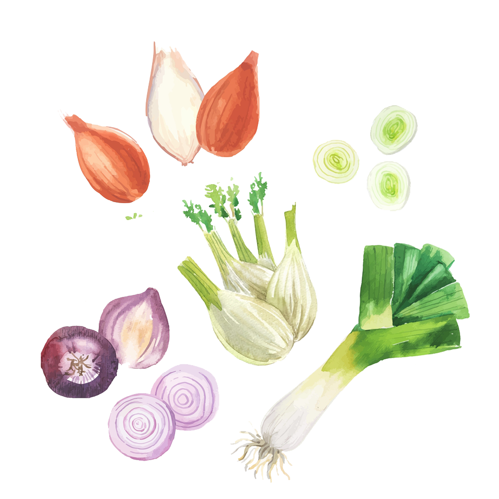 Onion Allium Fistulosum Garlic Watercolor Painting Illustration,