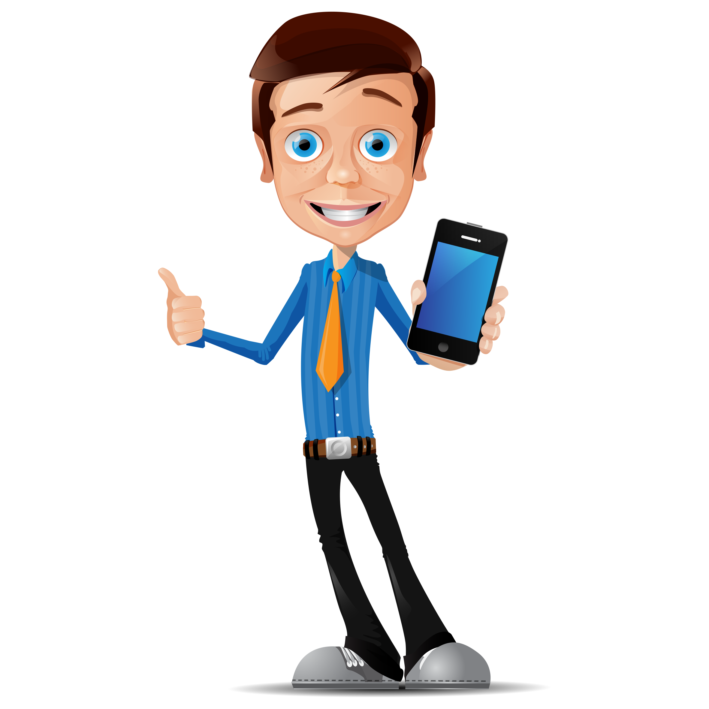Teamwork Man Holding Black Android Smartphone Illustration Web De