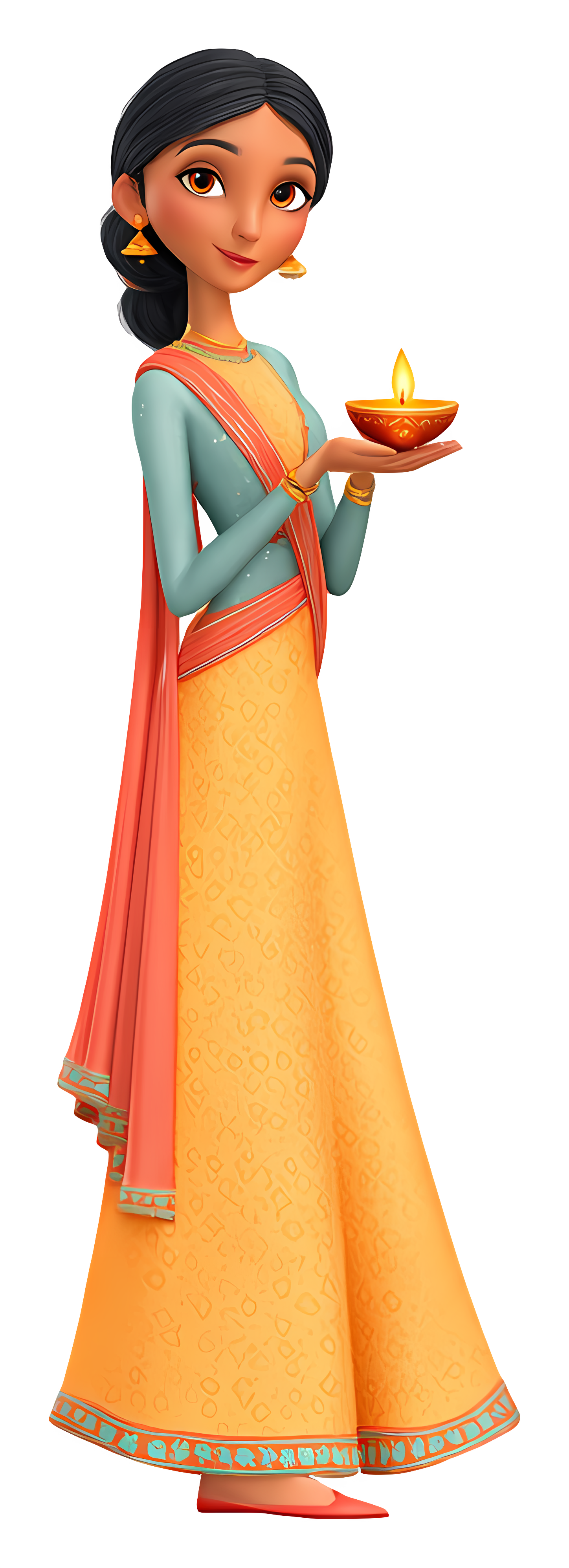 Traditional Woman Holding Lamp Transparent PNG