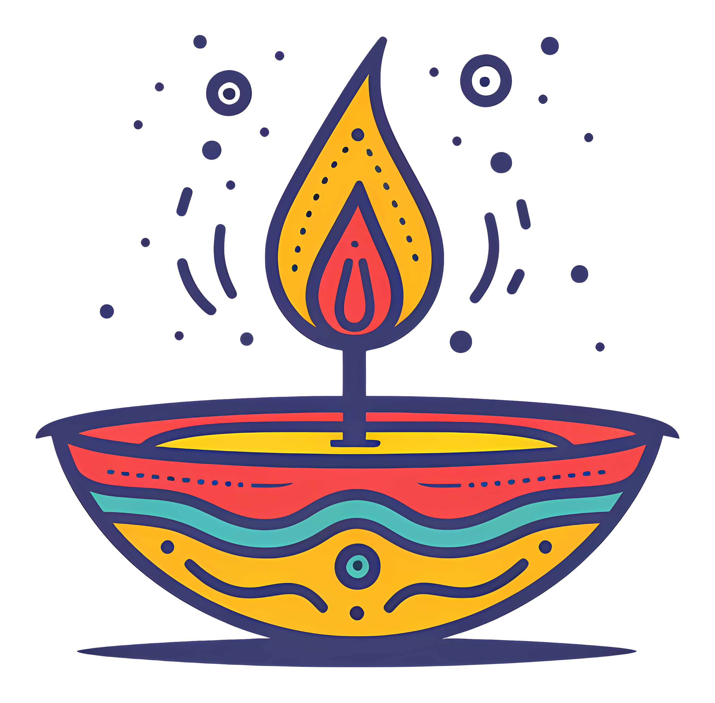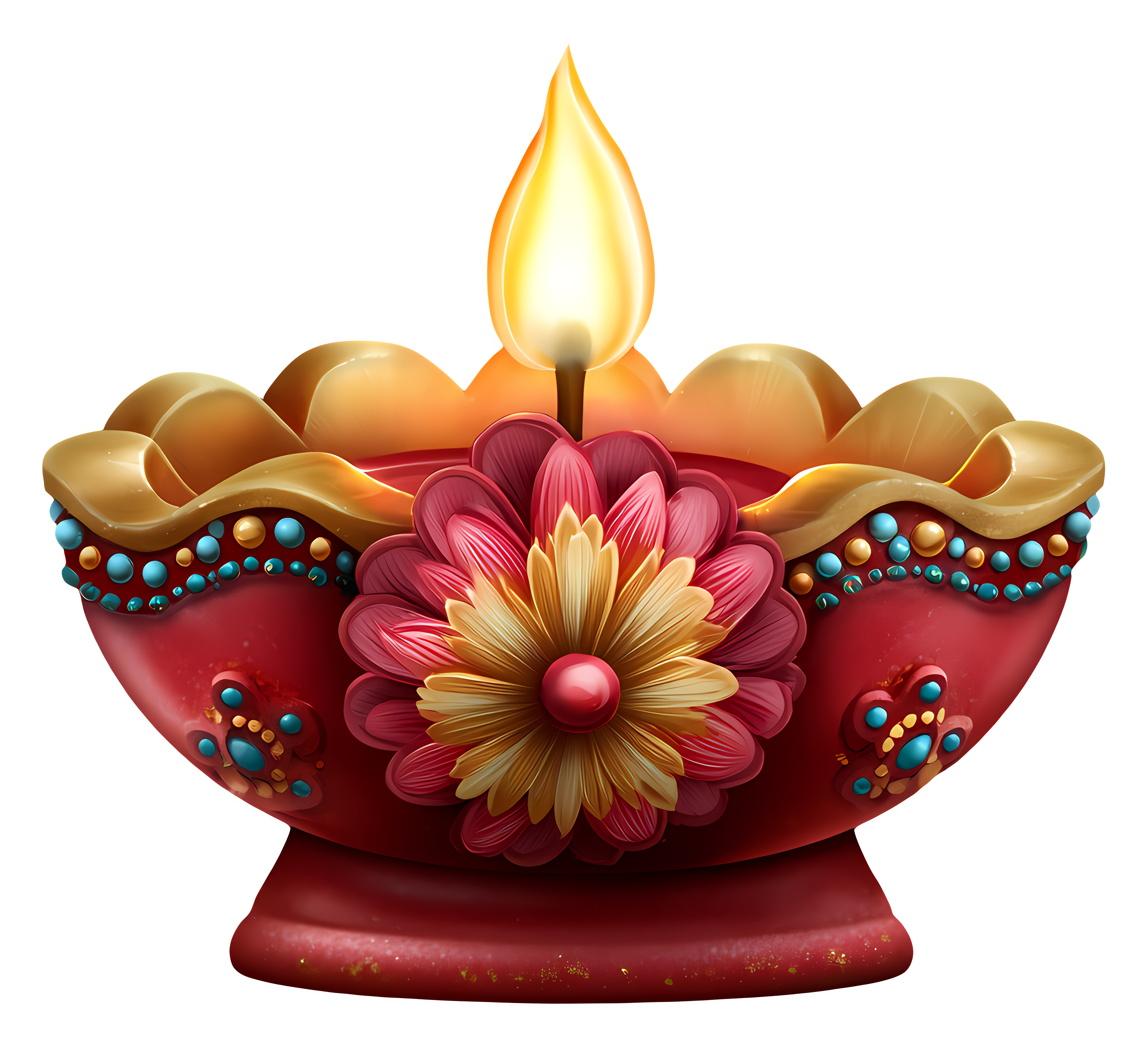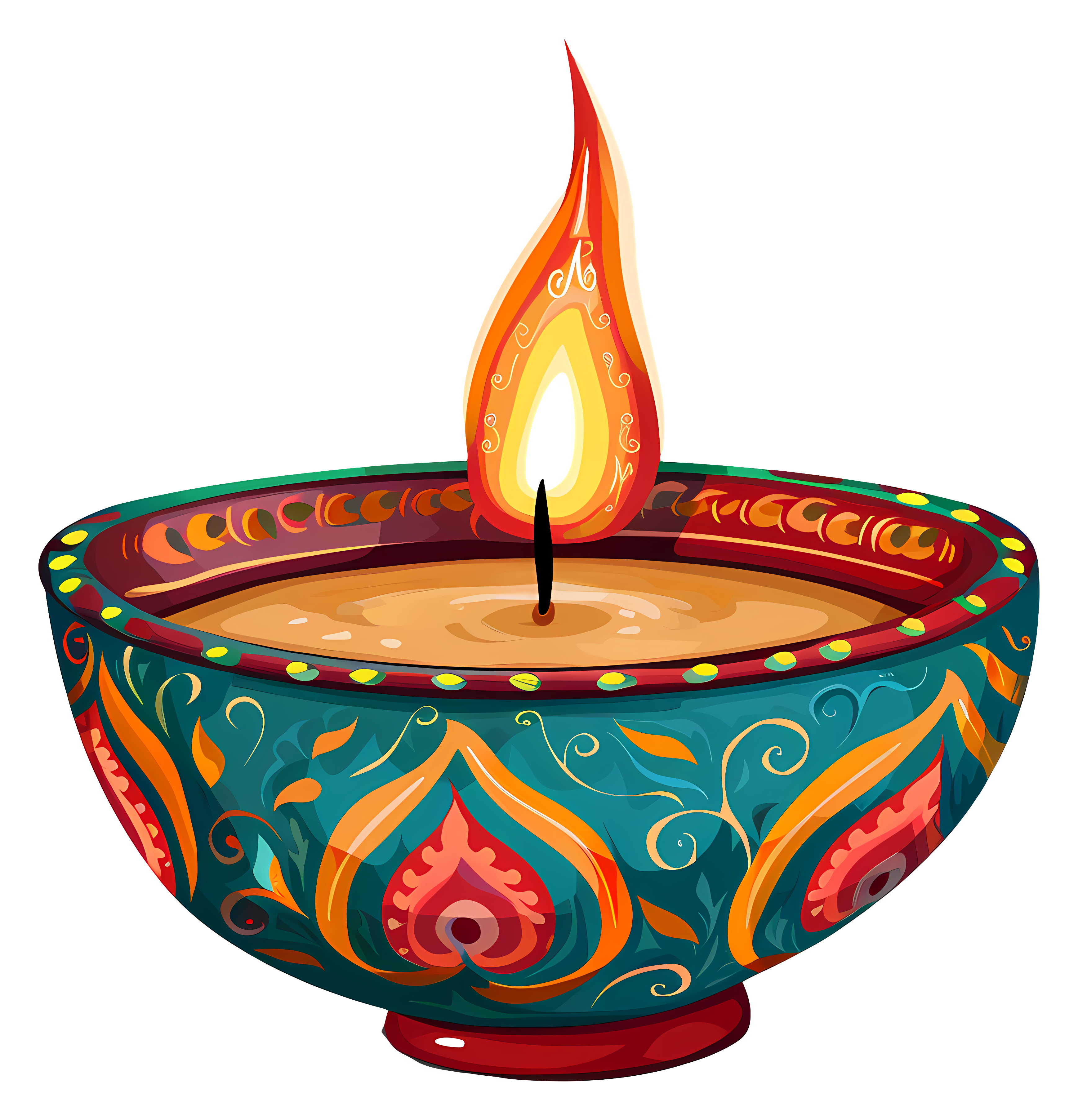 Colorful Decorated Diya Illuminated Flame Transparent PNG