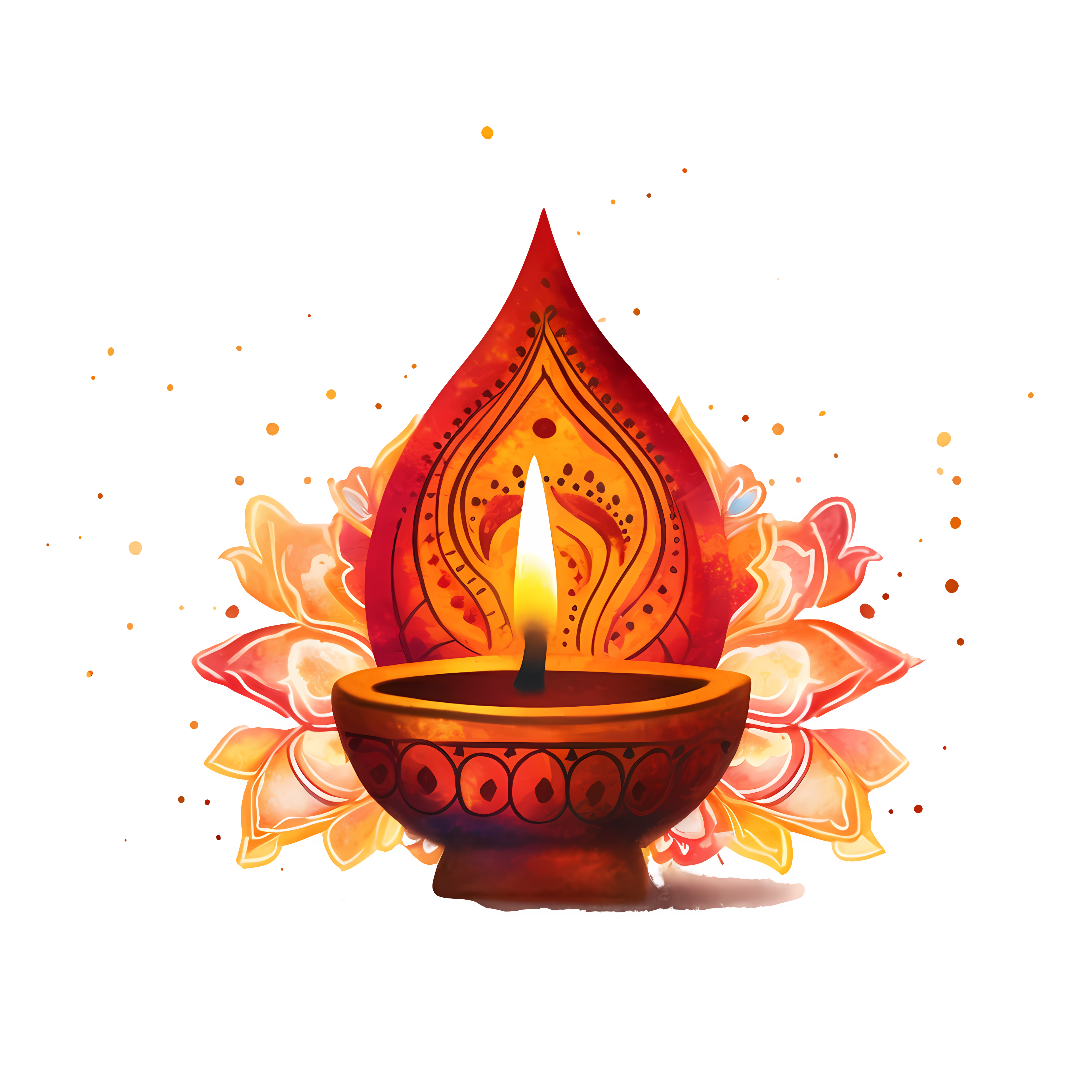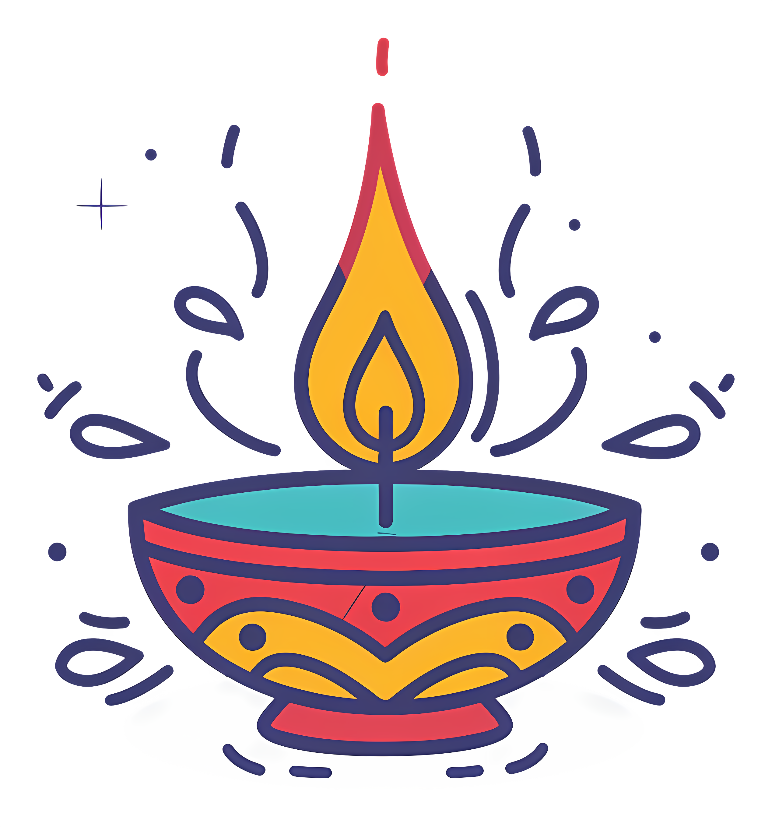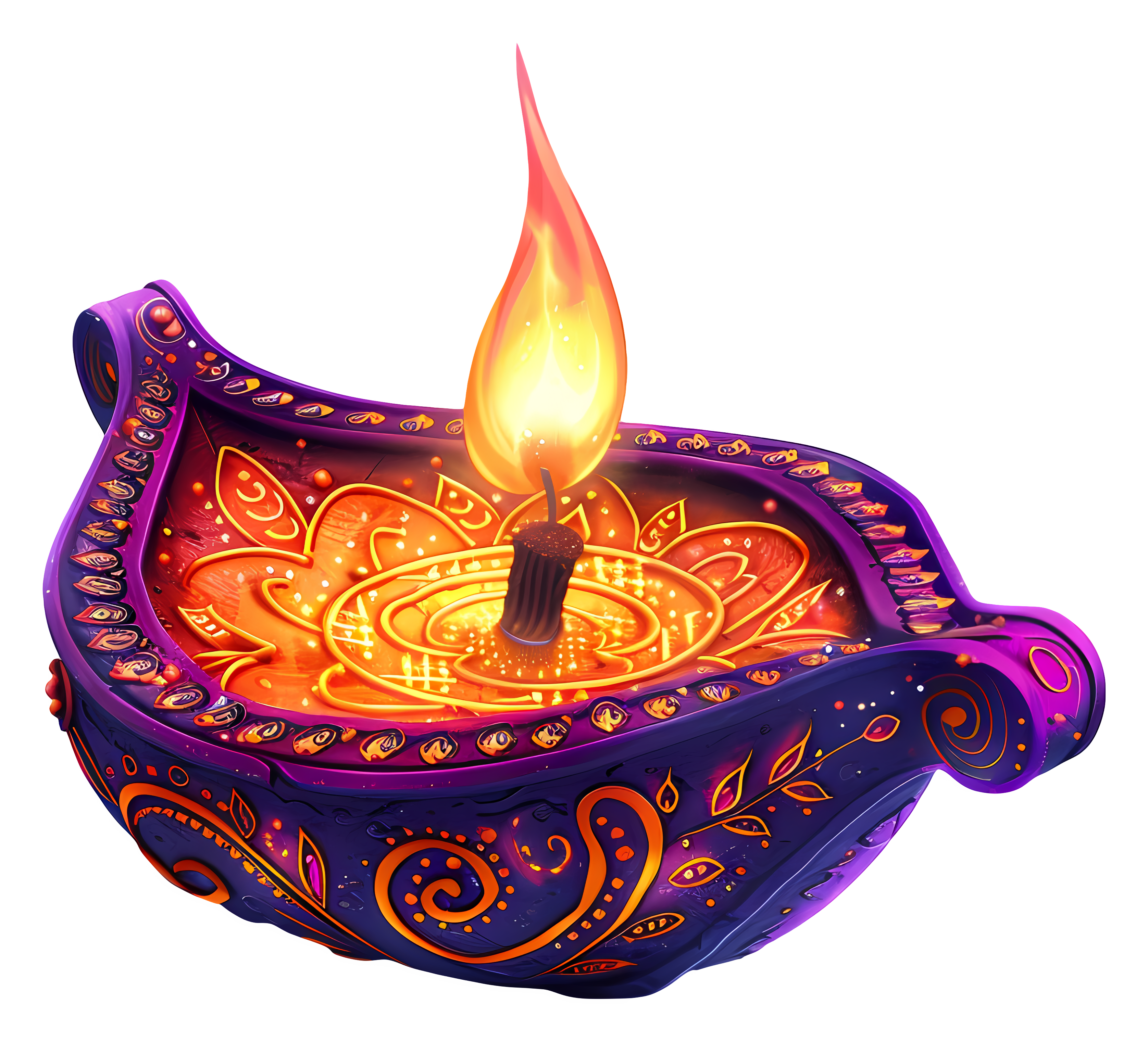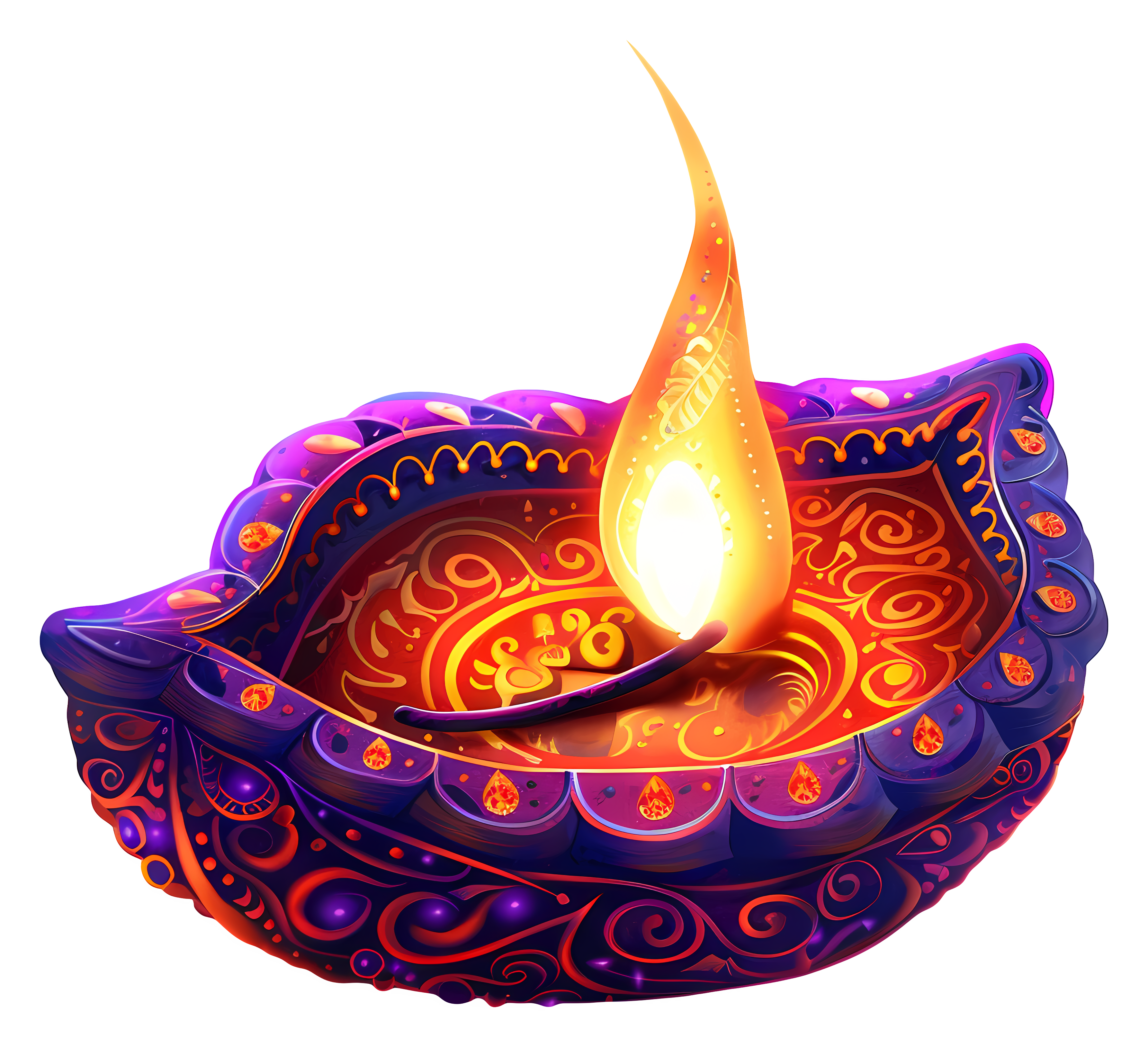 Colorful Diwali Diya Sparkling Flame Transparent PNG